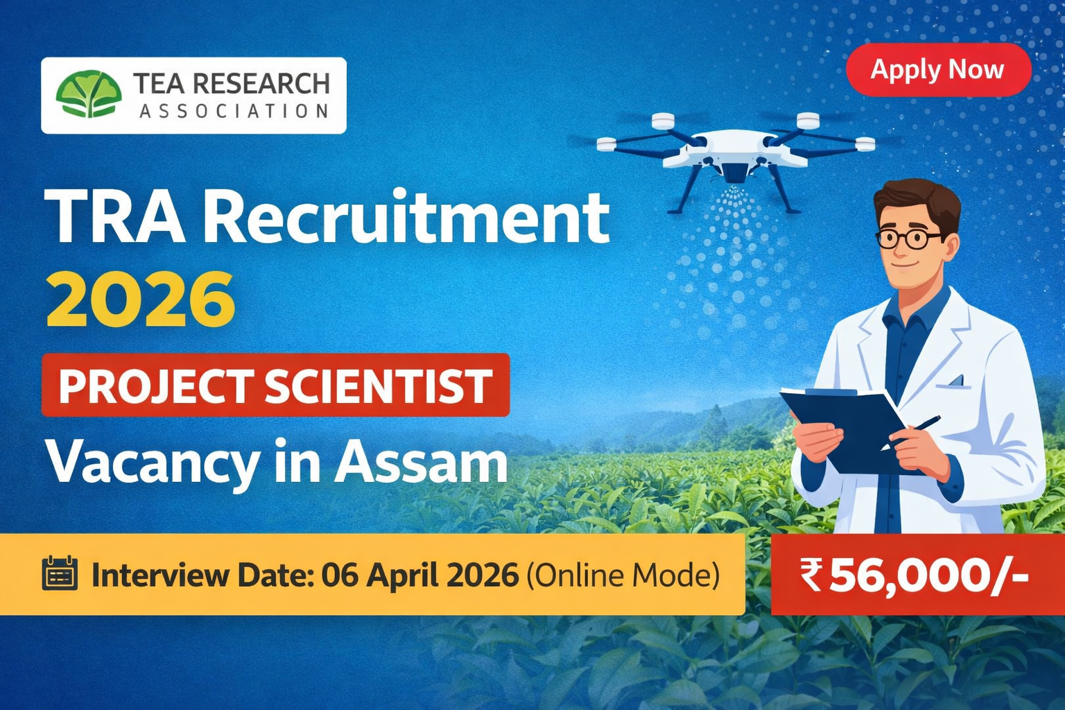 📢 Tea Research Association Recruitment 2026 Tea Research Association (TRA) invites applications for the post of Project Scientist-I under a collaborative project with Leher Sustainable Agri Pvt. Ltd. 📌 Post Details 📅 Important Dates 🎓 Educational Qualification Essential Qualification: Desirable Qualification: 🎯 Job Responsibilities 🎂 Age Limit ⏳ Job Duration 📧 How to Apply Eligible …